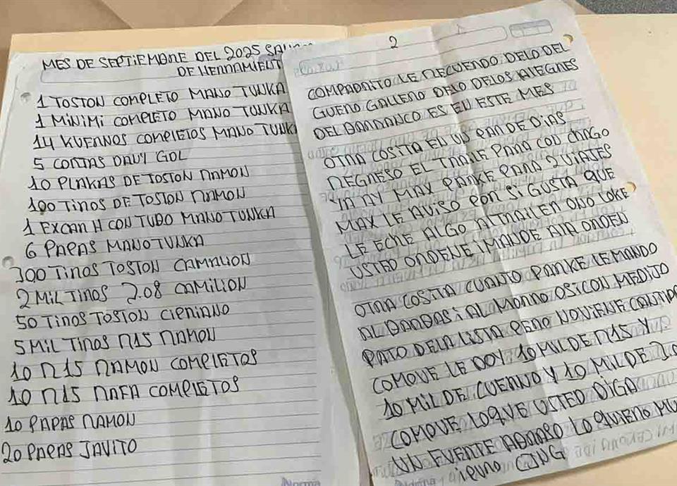En uno de ellos elaborado en septiembre de 2025, y que se encontró en uno de los refugios del capo Nemesio Oseguera Cervantes, "El Mencho" o "El Señor de los Gallos", se da cuenta de la distribución de un arsenal conformado por fusiles Barrett, AK-47 (Cuerno de Chivo), AR-15, Minimi (miniametralladora) un rifle SCAR, que usan las fuerzas especiales de Estados Unidos, y granadas de fragmentación.