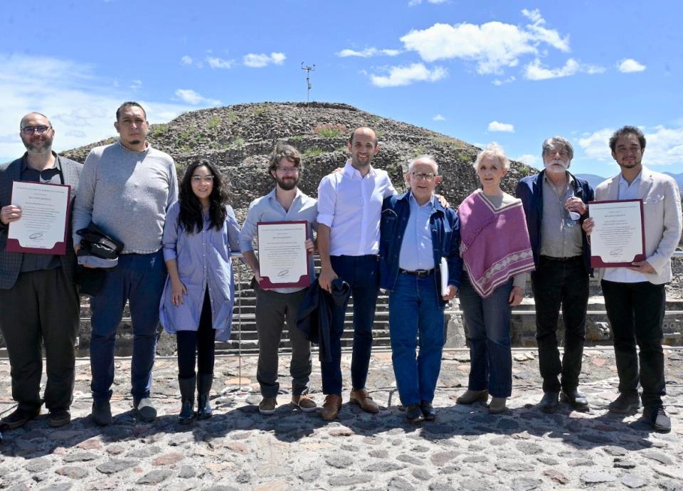 Cd. de México.- La Secretaría de Cultura del Gobierno de México, a través del Instituto Nacional de Antropología e Historia (INAH), y la Secretaría de Cultura y Turismo del Gobierno del Estado de México entregaron el premio al diseño ganador del sistema de protección integral de la fachada poniente de la Pirámide de la Serpiente Emplumada, de la Zona Arqueológica de Teotihuacan.