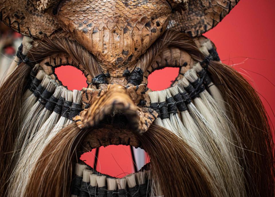 También se exhibe una serie de máscaras, de Montaño Roque, hechas con crines de caballo, pieles de serpiente y cocodrilo, así como cuernos de venado, que son parte de la indumentaria de la Danza de los diablos, un baile ritual de origen africano que tradicionalmente se lleva a cabo en la Costa Chica de Guerrero y Oaxaca.