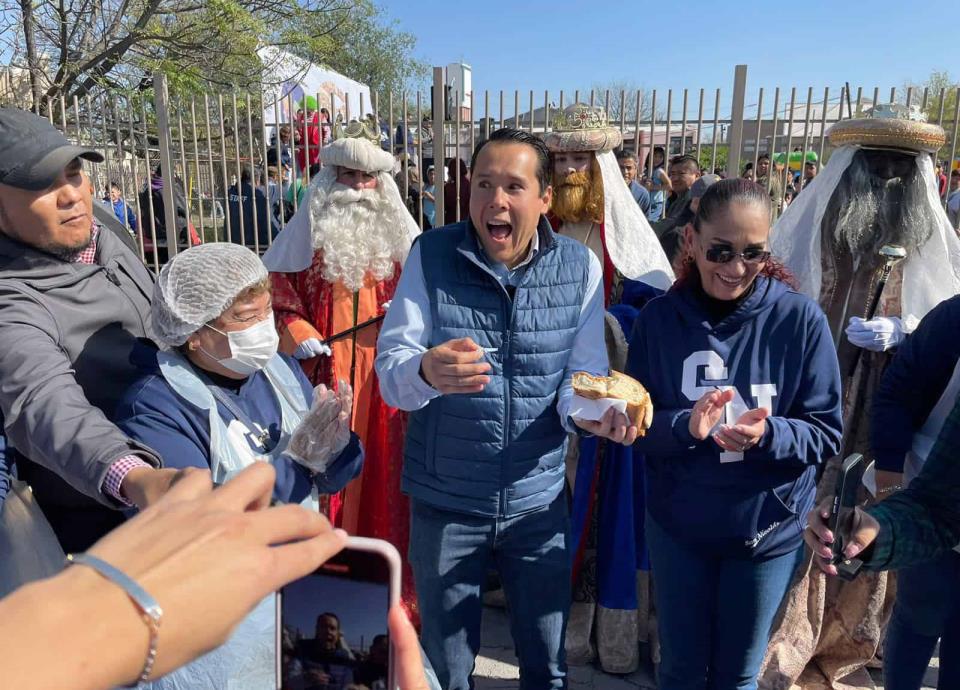 Teniendo como marco el Día de Reyes, el alcalde de San Nicolás Daniel Carrillo Martínez compartió con decenas de familias una Rosca de Reyes de más de 200 metros lineales con 400 figuras de los monitos.