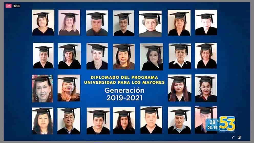 Monterrey, NL.-La pandemia ocasionada por el coronavirus no fue impedimento para que 25 estudiantes se graduaran del Diplomado del Programa Universidad para los Mayores de la Universidad Autónoma de Nuevo León.