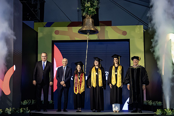 Al final de la jornada, tres alumnas recibieron el máximo reconocimiento que otorga la Universidad de Monterrey, el grado Summa Cum Laude. Ellas destacaron durante sus estudios de profesional por su desempeño académico y formación integral. Posteriormente, hicieron repicar la campana Vox Veritatis.