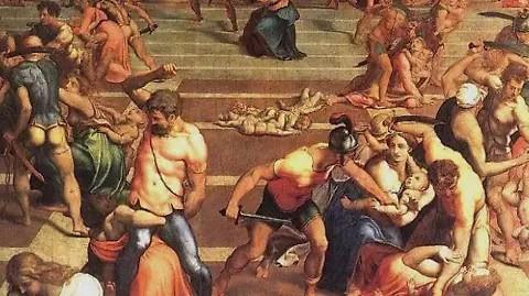 El Nuevo Testamento de la Biblia, San Mateo narra la brutal historia del envidioso rey Herodes I El Grande, quien, al sentirse desplazado por el nacimiento de Jesús, ordenó una gran matanza de niños, conocidos como los Santos Inocentes.