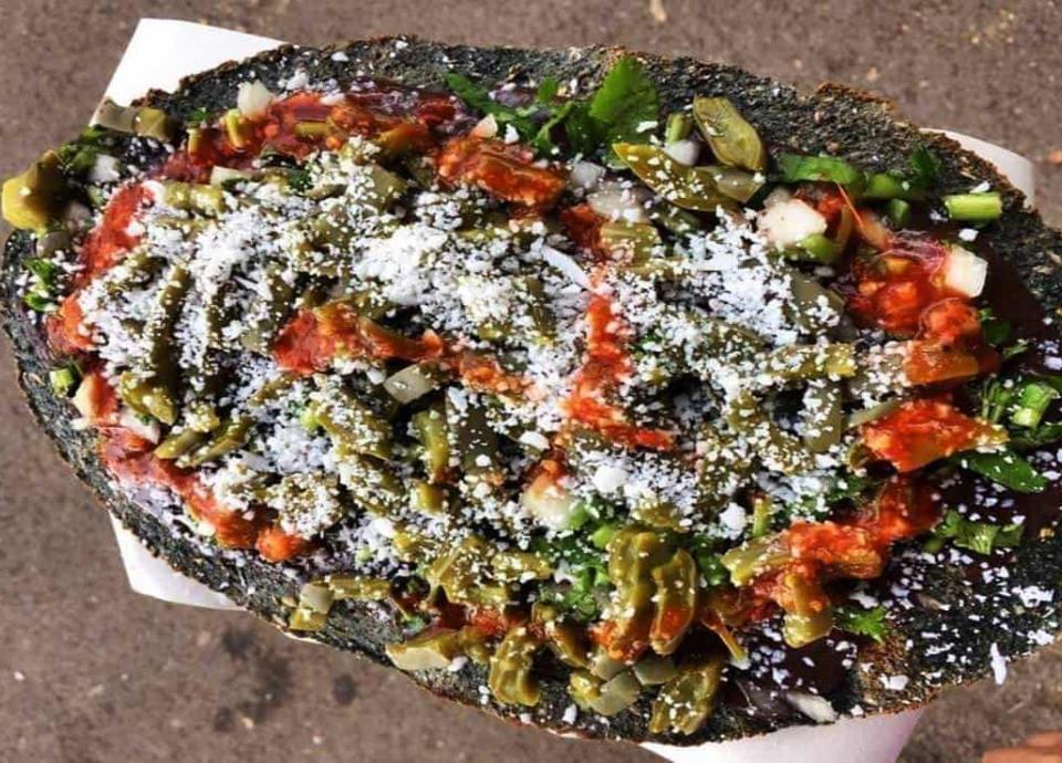 de maíz azul -si esas que muchos medios confundieron con tlayudas- en el estacionamiento del nuevo aeropuerto.