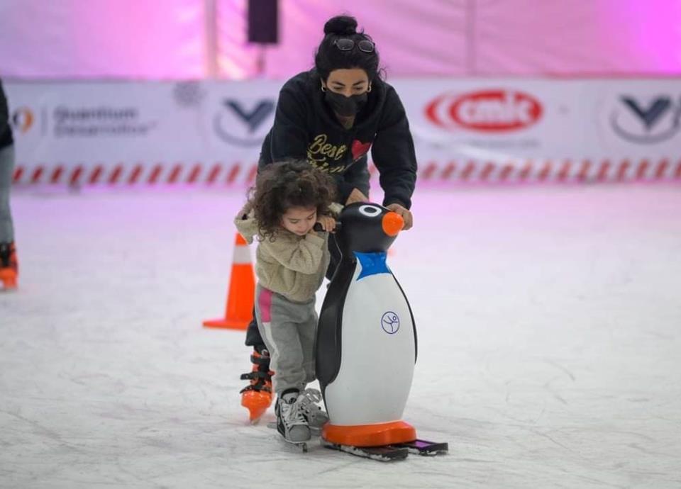 Desde muy temprana hora se pudo observar una gran cantidad de personas haciendo fila para poder ingresar a la pista de hielo localizada frente al Palacio de Gobierno.