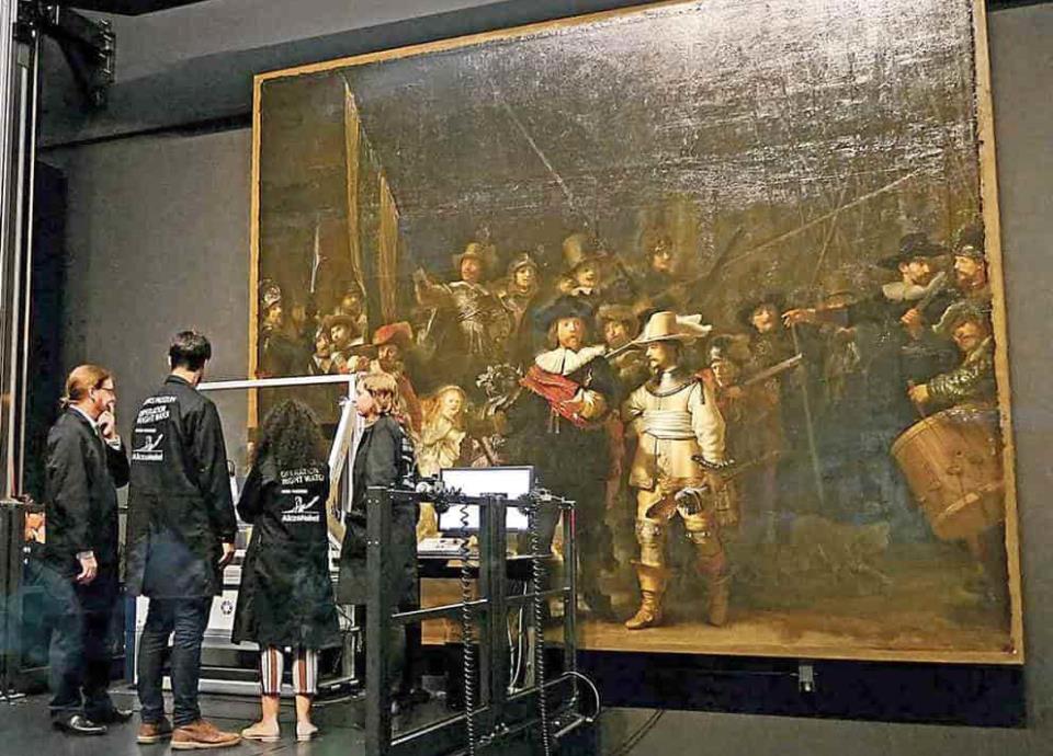 El mes próximo retirarán la tela de 379,5x453,5 centímetros (149,4x178,5 pulgadas) de su bastidor de madera y la colocarán en uno nuevo para estirar arrugas que aparecieron cuando llevaron el célebre cuadro a una galería temporaria mientras se efectuaban amplias renovaciones en el Rijksmuseum en 2003 a 2013.