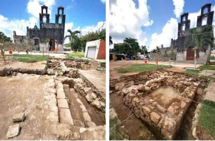 Osorio León explicó que en el caso de los cimientos del templo parroquial se encontró evidencia arqueológica consistente en muros, contrafuertes, entierros coloniales, lápidas funerarias y elementos prehispánicos empleados en la construcción de un templo de mayores dimensiones hecho por los franciscanos en 1619 bajo la advocación de San Juan Bautista.
