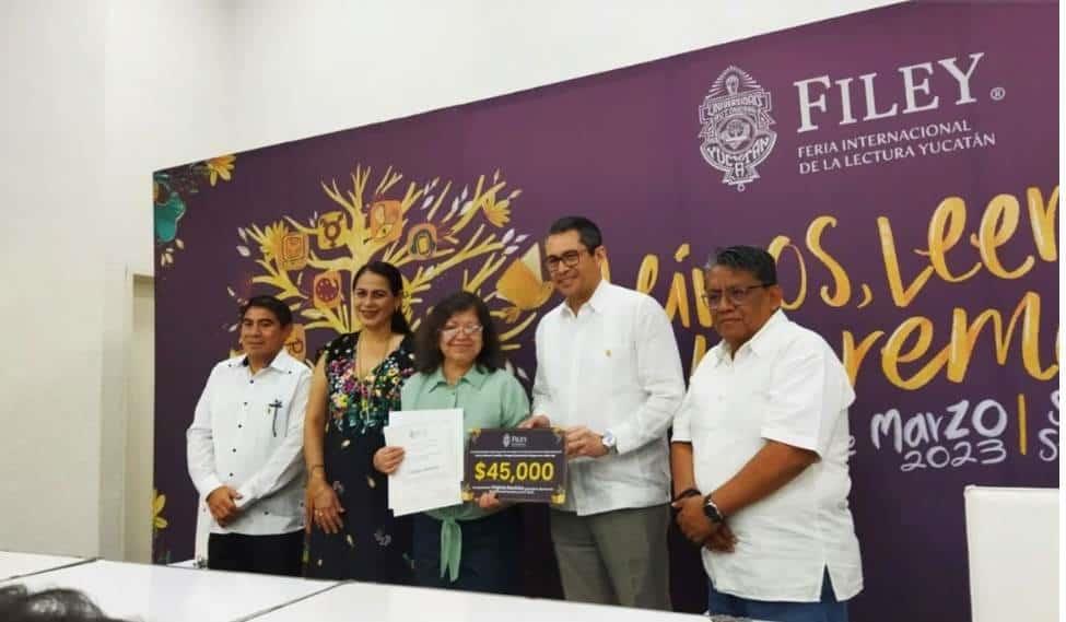 2023 que el lunes por la noche le fue otorgado de manos del rector de la Universidad Autónoma de Yucatán, Carlos Estrada Pinto, en el marco de la Feria Internacional de la Lectura Yucatán (Filey).
