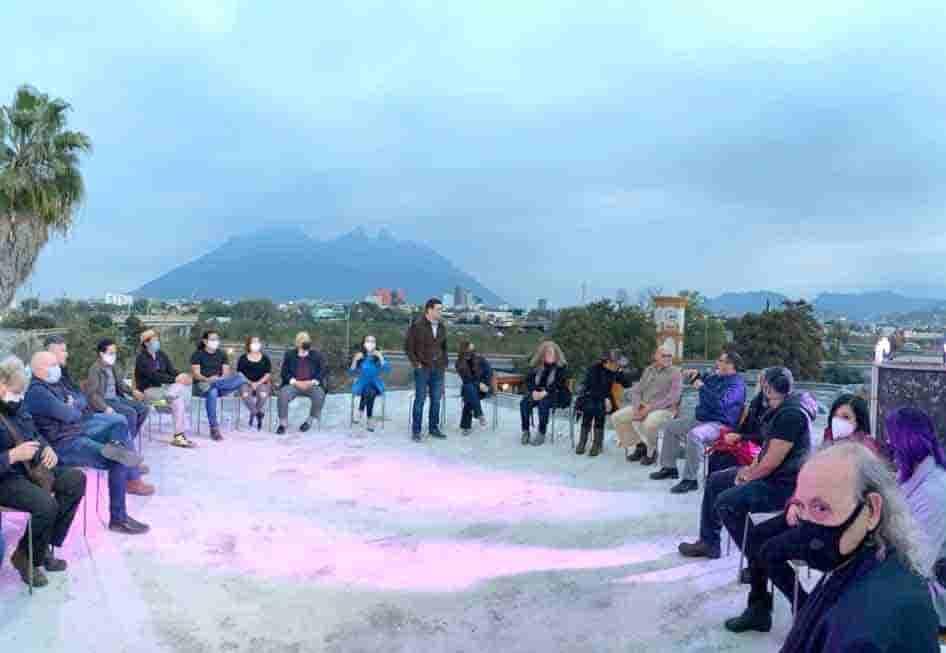 Monterrey, NL.- El legislador priísta con licencia, Francisco Cienfuegos se reunió con miembros del sector cultural de El Barrio Antiguo.
