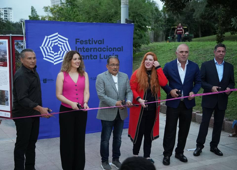 Victoria Kühne, presidenta del patronato del FISL, realizó el corte de listón en compañía del alcalde de Escobedo, Andrés Mijes Llovera; Bernardo Bichara, presidente del Patronato del Parque Fundidora; Jean Leautaud, director ejecutivo del Parque el autor de la misma. el fotógrafo Carlos Rodríguez Ramírez y la coordinadora ejecutiva del FISL, Ericka López.