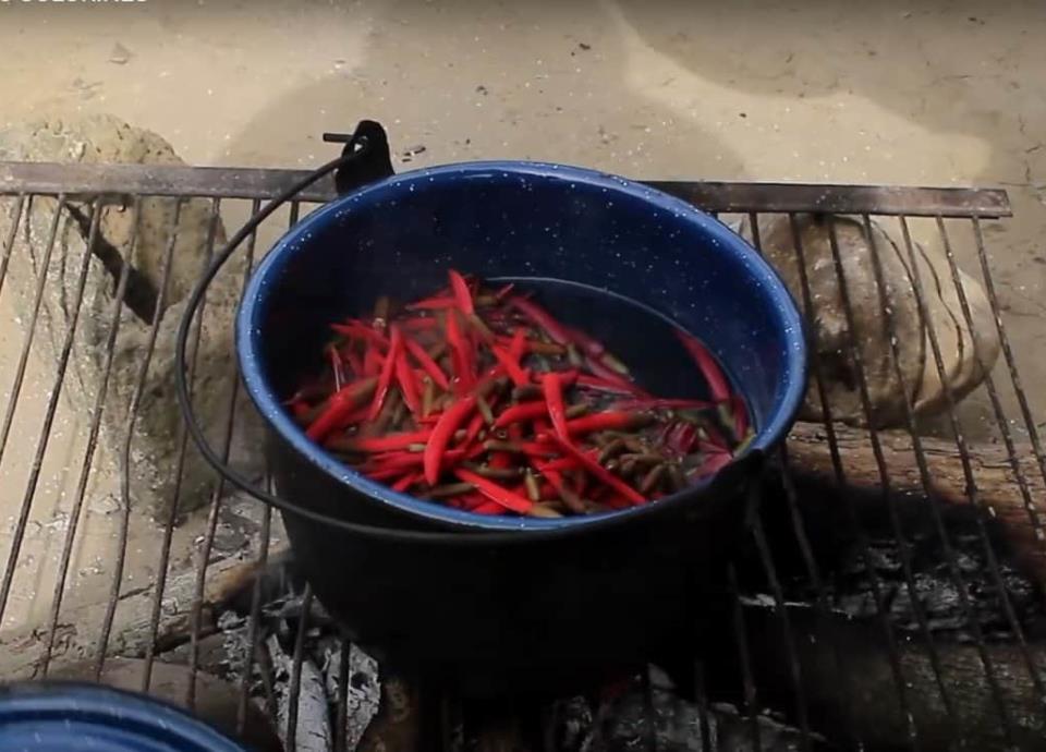 En una olla hervir agua, cuando el agua comienza a hervir, verter los colorines y asegurarse que el agua cubra las flores.