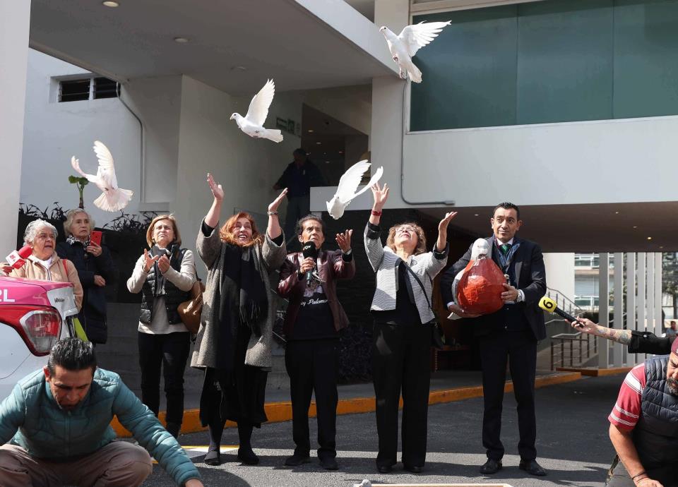 En el estacionamiento de Gayosso Félix Cuevas (sur de la Ciudad de México), Silvia Velázquez Martínez, quien ejerce la colombicultura, liberó más de 100 palomas, en homenaje a Cristina Pacheco.