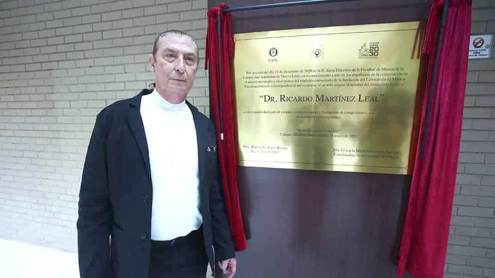 Luego de 30 años de recolectar, confeccionar y perfeccionar algunos sofis-ticados instrumentos para conformar el Laboratorio de Música Electroacústica, el maestro Ricardo Martínez Leal recibe honores por parte de la Facultad de Música (FAMUS) al acuñar su nombre en la placa de este espacio.