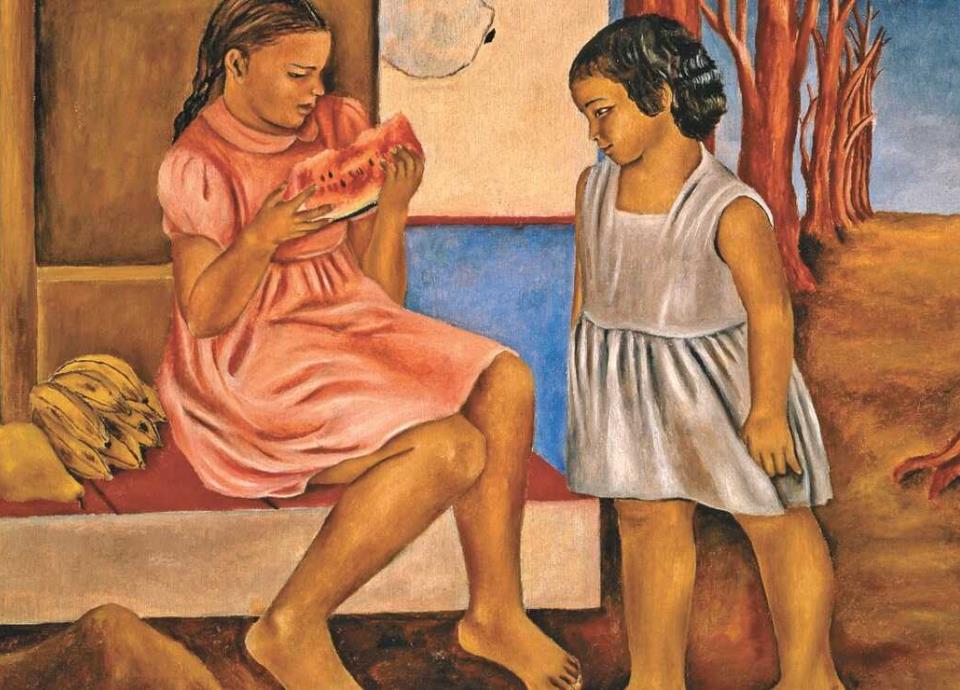 María Izquierdo, la artista de origen jalisciense nacida en 1902, quien estudió en la Academia de San Carlos y en 1953 dijo: "Es un delito ser mujer y tener talento", mantuvo su carrera en las obras de caballete, en donde sobresalen piezas como "Alacena con Paloma", "Niñas con Sandía" y "Niña con sombrero" que se pueden apreciar en la colección Sura en su sitio web: sura.com/arteycultura/.