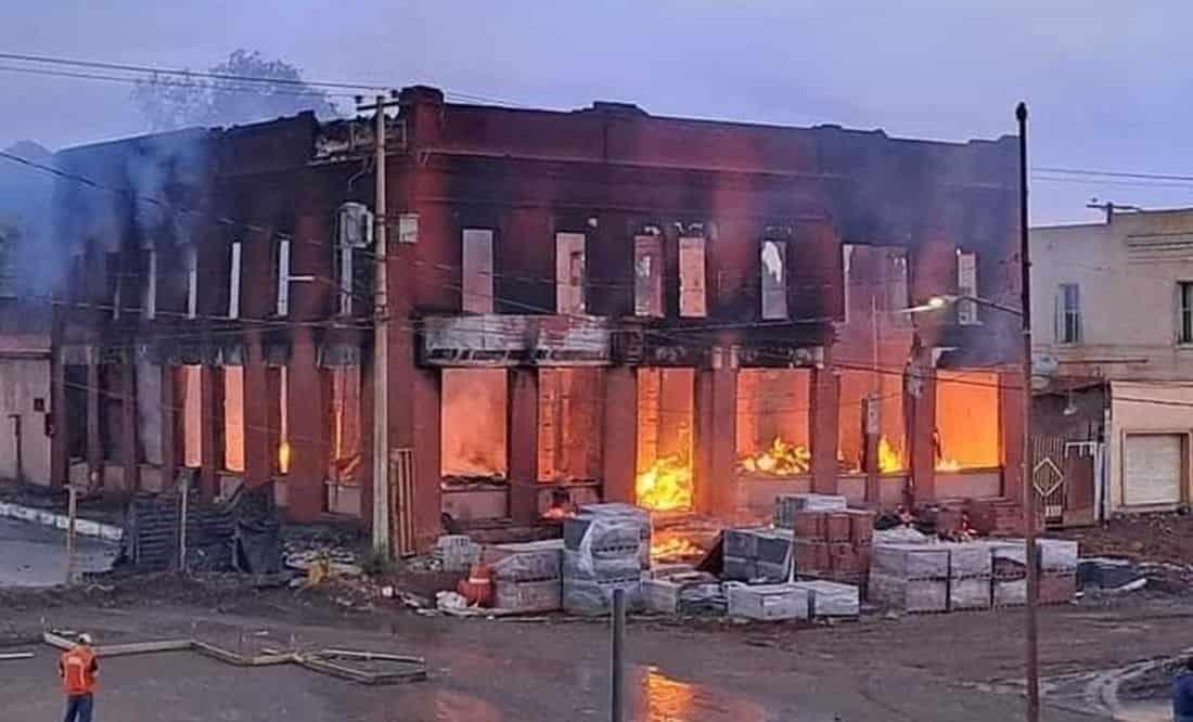 CANANEA, Son.- La madrugada de este domingo 16 de julio se originó un incendio que acabó con un edificio histórico construido en 1907, el cual albergó por años el banco Banrural.