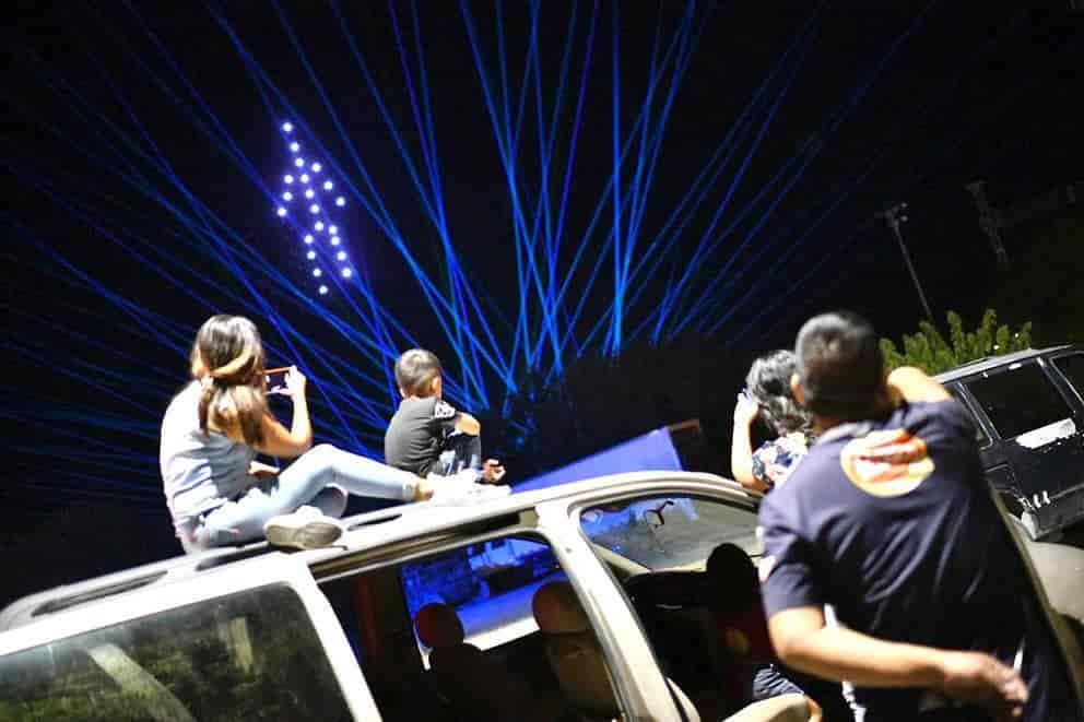 Los 64 drones, los rayos láser y la pirotecnia, sorprendieron en especial a las personas que habitan en el sector de San Antonio e incluso de otras zonas del municipio, quienes lograron captar las impresionantes figuras que se formaban en el cielo y las luces multicolores.