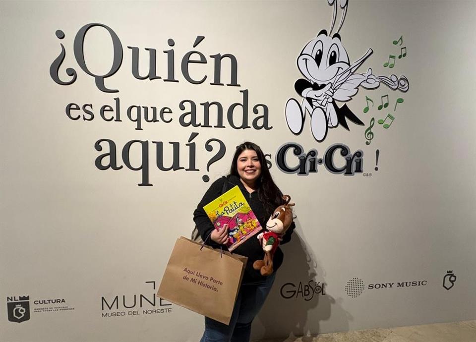 Melissa Aimee Escamilla Hernández recibió un reconocimiento conmemorativo y artículos promocionales de la exposición, marcando un momento significativo para esta muestra y reafirmando el interés intergeneracional que sigue despertando la obra de Cri-Cri.