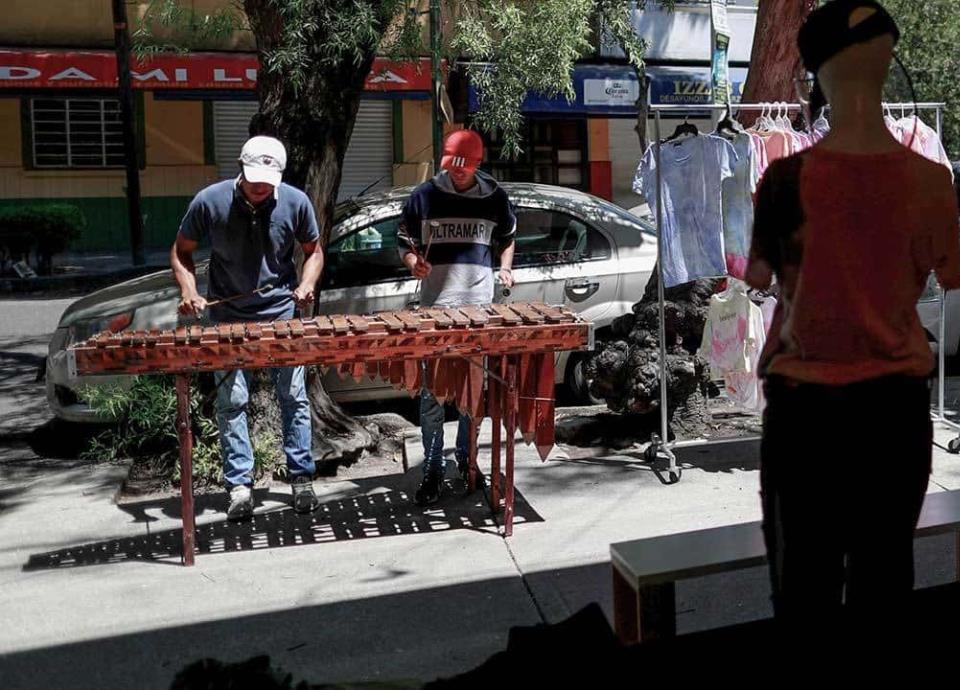 En la Colonia Condesa, Efraín Girón se mueve entre sus calles en compañía de otros tres colegas de banda. Empujan una marimba sobre una suerte de carrito que fue acondicionado para tal fin. Antes de la pandemia, dijo, tocaban viernes, sábados y domingos en festejos privados.