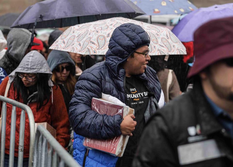 Los beneficiarios de los programas Jóvenes construyendo el futuro, no esperaron a recibir sus libros. Estudiantes de otros programas como Becas Benito Juárez y becas al transporte, sí se llevaron sus paquetes, pero buscaron protegerse del aguacero.