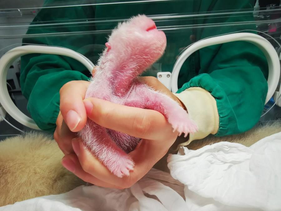 El bebé panda nació casi 40 horas después de que se rompiera la fuente de Cuicui.