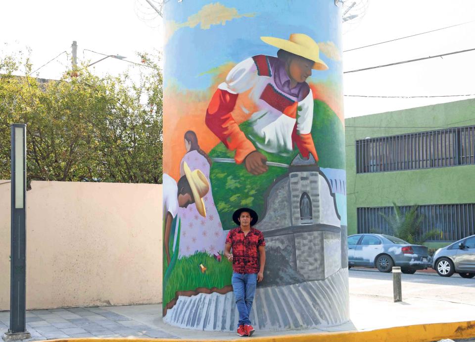 En otras de las estructuras, Héctor reflejó la historia y orígenes del pueblo, incluyendo a sus primeros pobladores trabajando la tierra con los acueductos como paisaje, así como la imagen de la Virgen de Guadalupe.