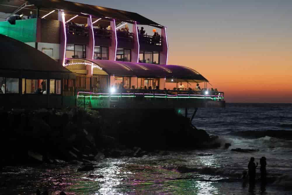 Franja de Gaza.- Las olas del Mediterráneo rompen debajo de los clientes que comen pescado fresco recién salido del mar en el café “Maldivas Gaza”, que ofrece una visión del paraíso a los palestinos confinados en la franja bloqueada.