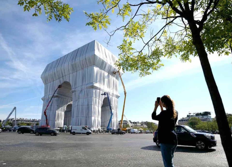 La instalación diseñada por los fallecidos Christo y Jeanne-Claude, una pareja de artistas que concibieron el proyecto en 1961, se inaugurará el sábado. Se organizarán visitas durante casi tres semanas. Durante los fines de semana, la transitada rotonda en torno al arco quedará restringida a los peatones.