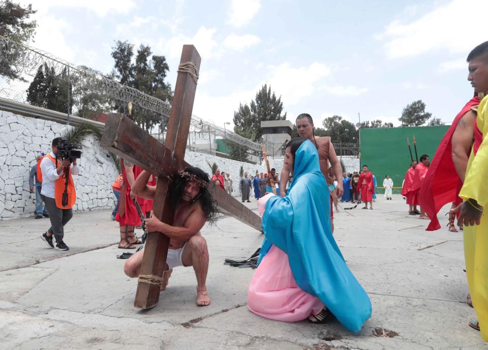 CIUDAD DE MÉXICO.- Jesús fue crucificado frente a una torre de seguridad en uno de los patios del Reclusorio Oriente.