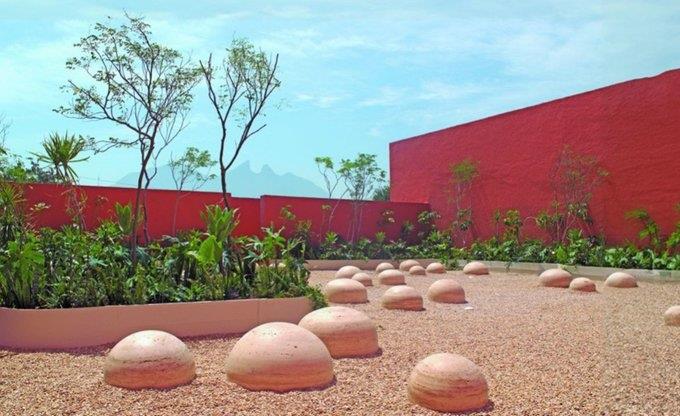 "Quise sumar una capa al jardín. La primera capa es la de las plantas, luego siguen los muros del museo y luego están las montañas que rodean a la ciudad de Monterrey. Son capas que protegen a la vida que tienen dentro. Estoy compartiendo algo muy íntimo y al exponerlo se convierte en algo de la esfera pública. Me gusta que la gente está en contacto físico con mis obras, que se sienten, que las toquen, que se acuesten en el piso, como si se estuviera dentro de una casa, dentro de un vientre maternal", dice la artista que ha expuesto por ejemplo en Saatchi Gallery (Londres), Yorkshire Sculpture Park (Londres) y en el Museo Federico Silva (San Luis Potosí).