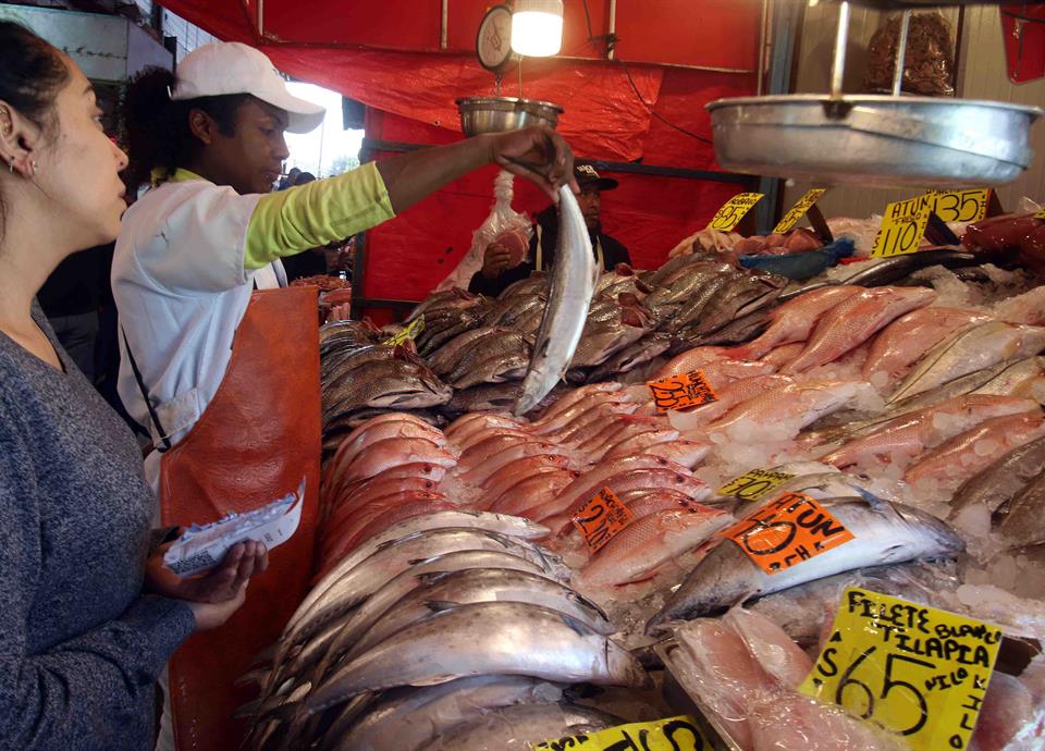 Pescados y mariscos: atún, mojarra, sardina, camarones en diversas preparaciones, ceviches y caldos de mar.