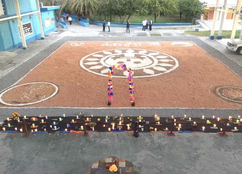 Con un macro altar, maestros y alumnos de la Secundaria No.46 María Gloria de los Santos, rindieron tributo a Mictlantecuhtli, dios de la muerte