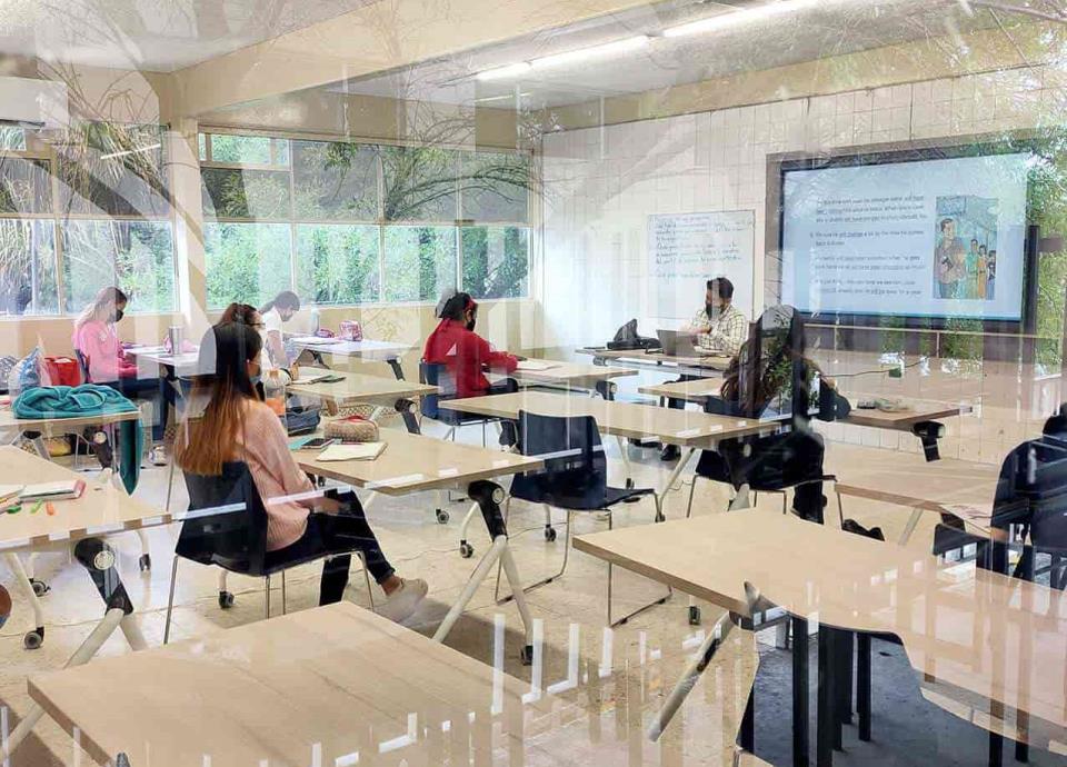 La mitad de las aulas, dijo, están equipadas con una pantalla y cámara para trabajar bajo módulo hibrido.