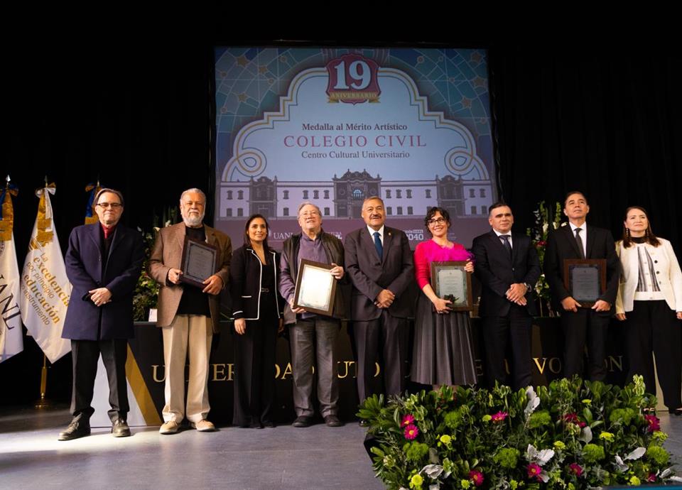 En el marco del décimo noveno aniversario del Colegio Civil, la Universidad Autónoma de Nuevo León hizo entrega del Reconocimiento al Mérito Artístico Colegio Civil Centro Cultural Universitario, en su edición 2026.