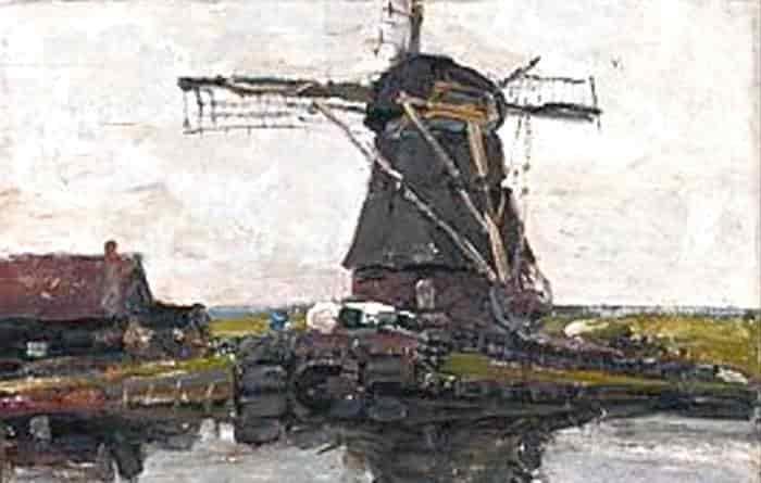 Los ladrones también se llevaron una pintura al óleo representativa de 1905 de un molino de viento junto al río de Mondrian, el pintor holandés que se hizo famoso por sus posteriores obras lineales abstractas.