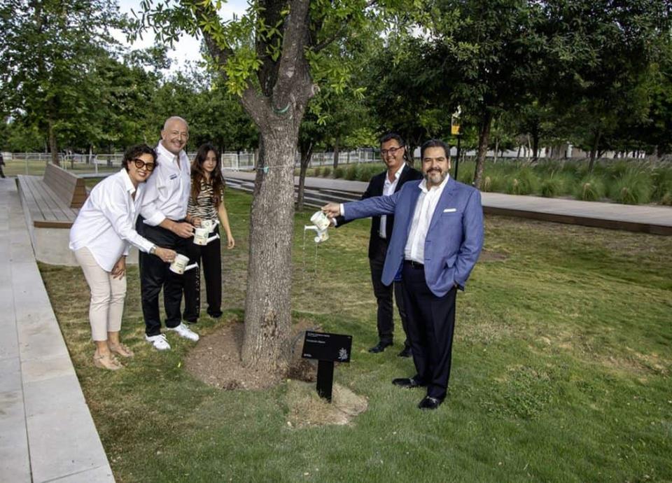 Previo a la firma del convenio, los directivos de Fundación Alpura adoptaron dos árboles de la campaña Siembra un Respiro de la UDEM, en los jardines de El Solar, del campus UDEM, uno a nombre de la organización y otro para Armando Paredes y familia.