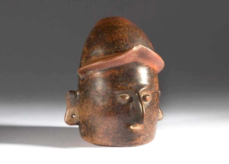 El lote 149 era un jarrón de 17 centímetros en forma de cabeza con un tocado y orejas con adornos grabados, procedente de alguna cultura que habitó en el actual Colima.