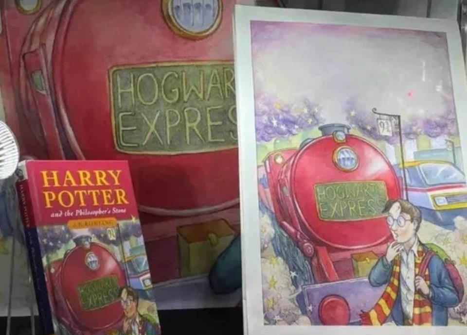 Esta dichosa representación es la pionera del mundo mágico de Potter y muestra al clásico personaje de frente a un tren que va rumbo a Hogwarts, portando sus anteojos y la clásica bufanda con los colores de Gryffindor.