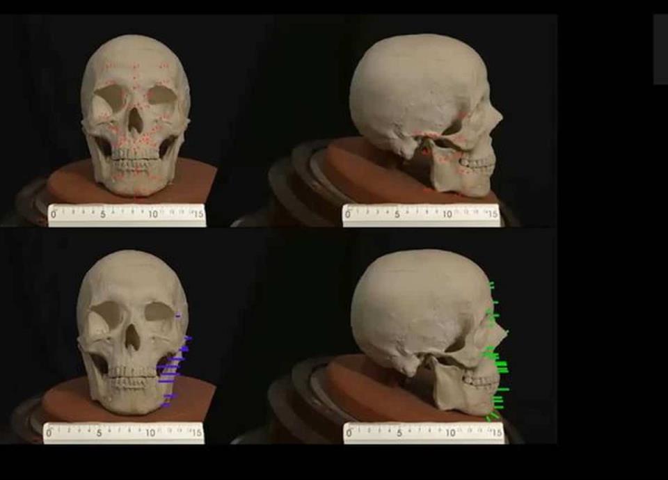 Falconi, junto a un grupo de antropólogos forenses y otros expertos, reconstruyó el rostro con las técnicas de estratificación de tejidos utilizadas por criminólogos.