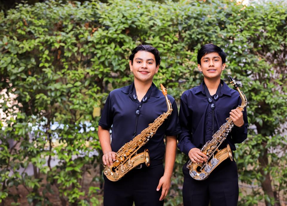 La historia musical de Santiago y Benjamín comenzó cuando ambos tenían 10 años y, en plena pandemia, decidieron entrar al programa de Iniciación Musical de la Facultad de Música de la UANL, donde eligieron aprender a tocar el saxofón, aunque cada uno tuvo un acercamiento particular a la música.