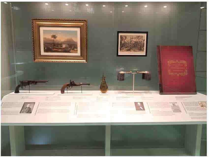 También hay otros objetos de uso militar como unas charreteras de plata repujada y cincelada del siglo XIX; un revólver Colt Walker calibre 44 que data de 1847; y una Pistola de avancarga, de Madera y metal, que en conjunto describen la tecnología militar de la época.