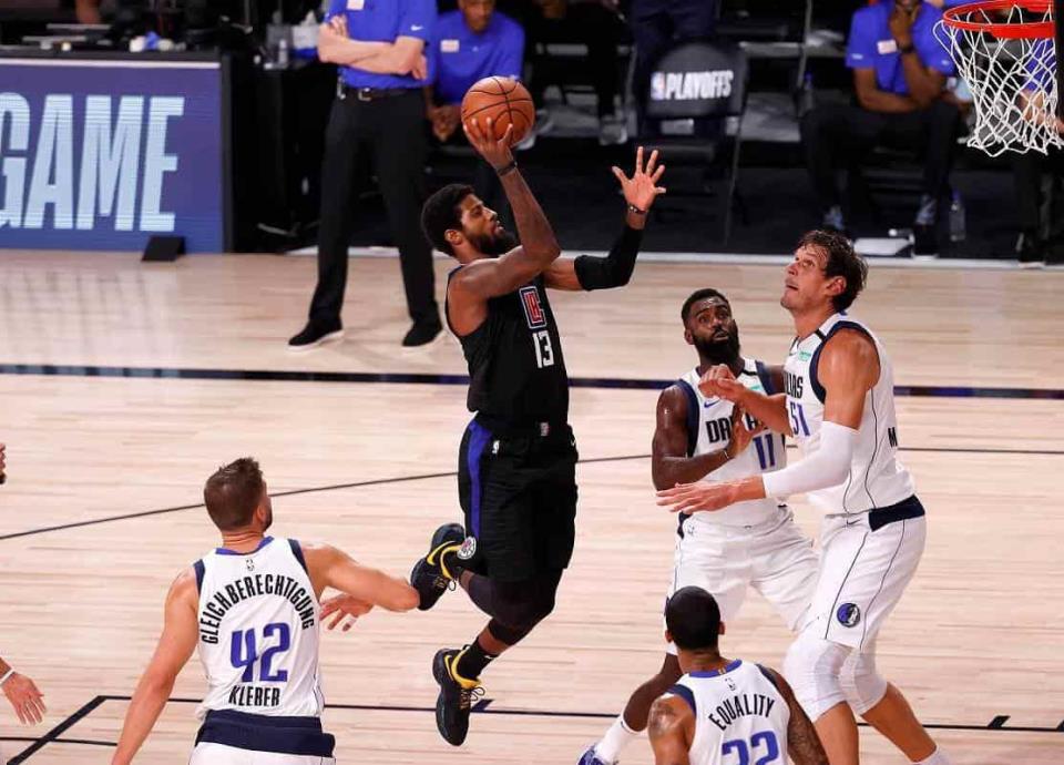 Paul George tuvo 28 puntos para los Clippers, incluidos un par de triples en el último minuto del tercer cuarto que redujo un déficit de 12 unidades a la mitad para arrancar el último cuarto.