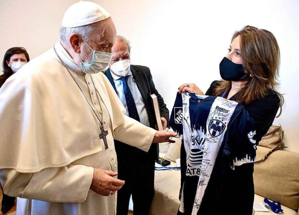 Una aficionada de Rayados, identificada como Andrea Lobo, entregó un jersey del Monterrey al Papa Francisco, pontífice del Vaticano desde el año 2013.