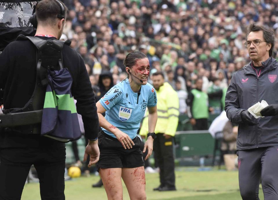 Guadalupe Porras, la árbitro asistente en el duelo entre Betis y Athletic Club de Bilbao, chocó con una cámara de televisión en ese duelo de la Liga de España