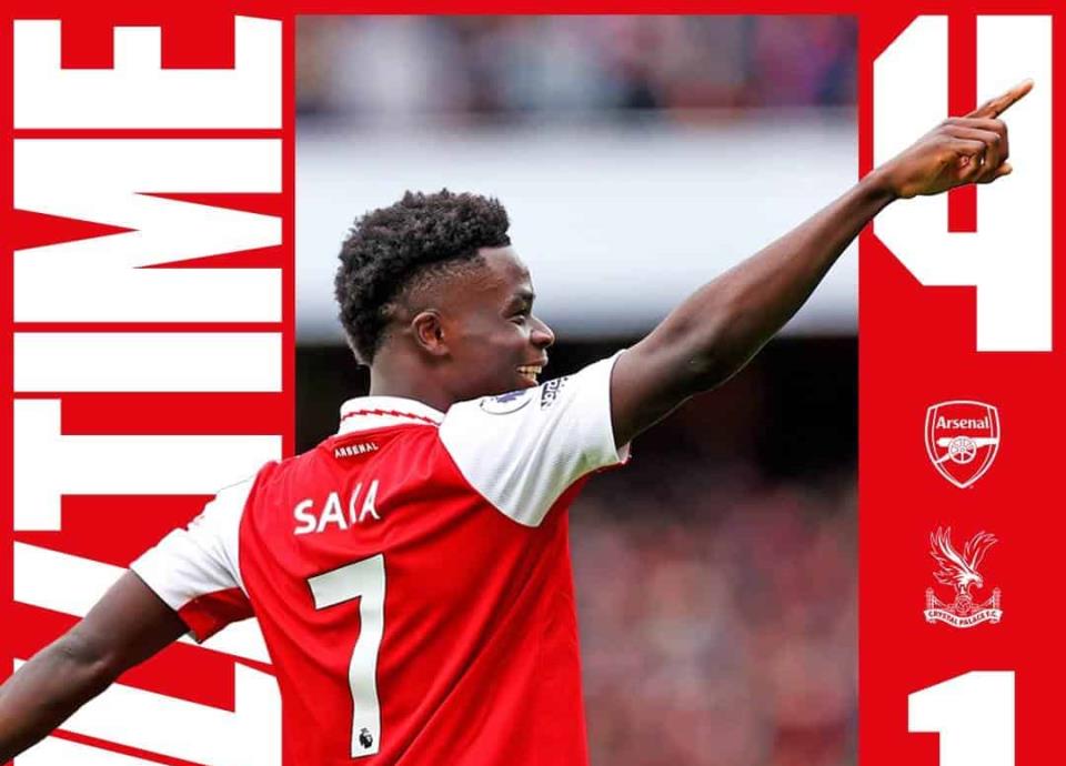 Con goles de Gabriel Martinelli, un doblete de Buyako Saka y otro de Thomas Partey, el Arsenal goleó al Crystal Palace