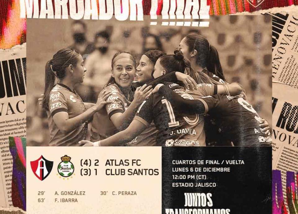 El Atlas de Guadalajara derrotó con un global de 4-3 al cuadro de Santos y con ello se instalaron en las semifinales de la Liga MX Femenil.