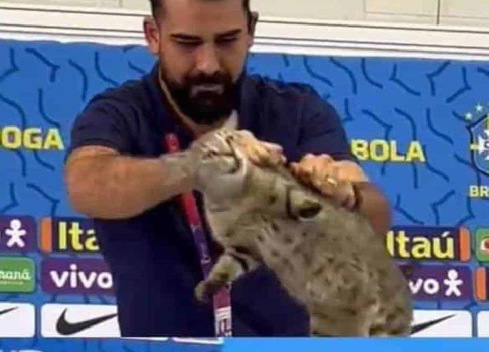 Avientan a gato en conferencia de la selección brasileña
