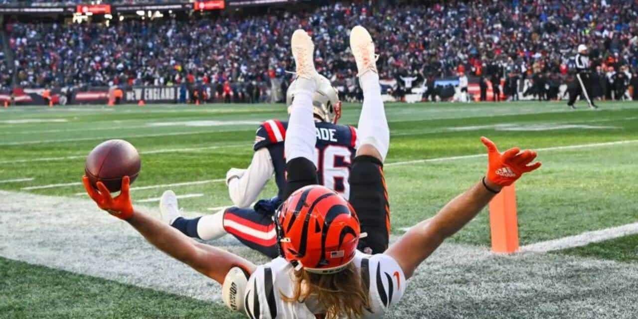 Joe Burrow lanzó tres pases de anotación y los Bengals de Cincinnati robaron un balón en la zona roja durante la agonía del encuentro para preservar una victoria 22-18 sobre los Patriots de Nueva Inglaterra el sábado.