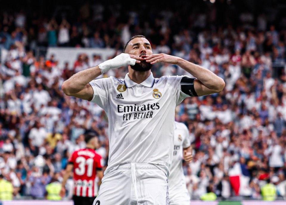 , se despidió el domingo del conjunto merengue y lo hizo anotando un gol.Este conjunto del Real Madrid logró igualar con el cuadro del Athletic de Bilbao y eso fue a un gol en la última jornada de la Liga de España. Pese a iniciar perdiendo el duelo con un tanto de Sancet, después Benzema igualó todo en la segunda mitad.Ese tanto fue realizado por la vía del penal, desde los 11 pasos y en el mítico Santiago Bernabéu.Después de ese gol, Benzema agradeció a la tribuna por el apoyo que tuvo en el club desde mediados del 2009 hasta el final de esta temporada.Tras este resultado, el Real Madrid acabó su temporada en la Liga de España y lo hicieron con 78 puntos, en el segundo lugar.El campeón en la Liga de España terminó siendo el líder Barcelona, quienes tienen 88 unidades.