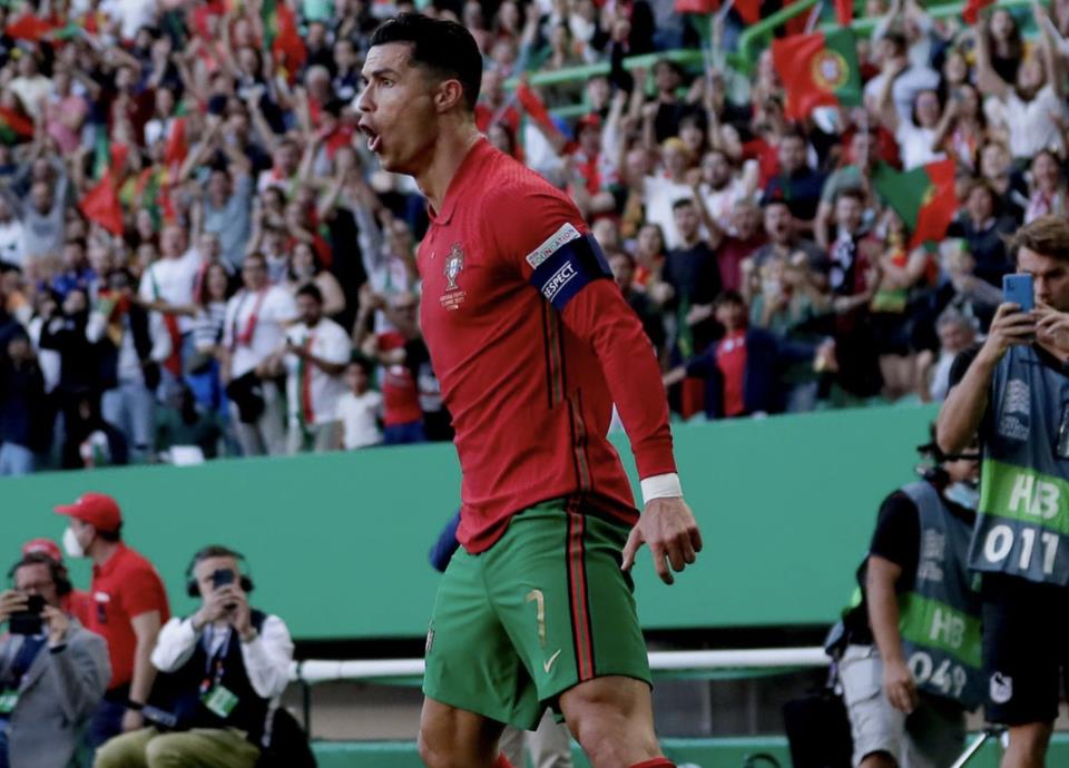 en la victoria de 4-0 sobre la escuadra de Suiza, todo esto en la Nations League.La escuadra portuguesa superó por cuatro goles de diferencia al conjunto suizo y ahí lo destacado fueron las dos dianas de CR7.Los dos goles de Cristiano Ronaldo fueron al 35' y 39' de acción, mientras que William y Cancelo anotaron los otros dos al 15' y 68'.Este resultado permitió que Portugal sea líder de su grupo y lo sean con seis puntos, superando a España y los restantes países.Ya en otros resultados de la Nations League durante el día domingo, Grecia superó 1-0 a Kosovo, Noruega derrotó 2-1 a Grecia, España empató 2-2 con República Checa, Serbia superó 4-1 a Eslovenia y Georgia derrotó 5-2 a Bulgaria.
