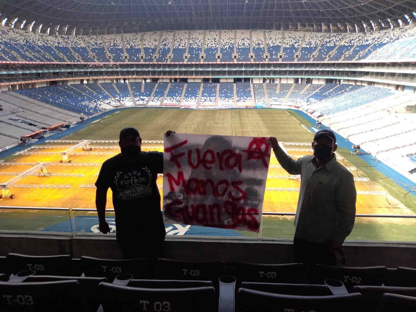 La afición de Rayados no está de acuerdo con que Hugo González pueda seguir en el Monterrey y siempre buscan una forma de seguir protestando su posible quedada en el equipo.